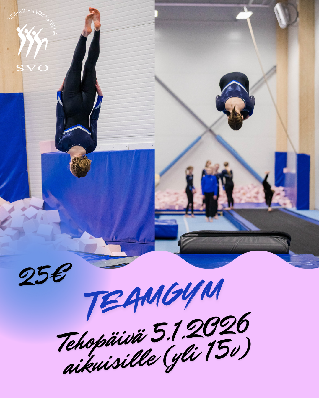 Tervetuloa mukaan kertaluontoiseen teamgym aikuisten tehopäivään! Treenissä pääset tutustumaan teamgymin kolmeen eri osa-alueeseen: vapaaohjelmaan, volttirataan sekä trampettiin. Treeni sopii…
